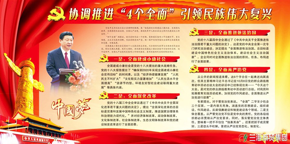 2014年12月,習(xí)近平總書記在江蘇考察時(shí)首次將“四個(gè)全面”并提;今年2月2日,在省部級(jí)主要領(lǐng)導(dǎo)干部專題研討班開班式上,習(xí)近平明確肯定“四個(gè)全面”是“戰(zhàn)略布局”,并對(duì)它們的邏輯關(guān)系做出闡釋:“這個(gè)戰(zhàn)略布局,既有戰(zhàn)略目標(biāo),也有戰(zhàn)略舉措,每一個(gè)‘全面’都具有重大戰(zhàn)略意義。全面建成小康社會(huì)是我們的戰(zhàn)略目標(biāo),全面深化改革、全面依法治國(guó)、全面從嚴(yán)治黨是三大戰(zhàn)略舉措。”